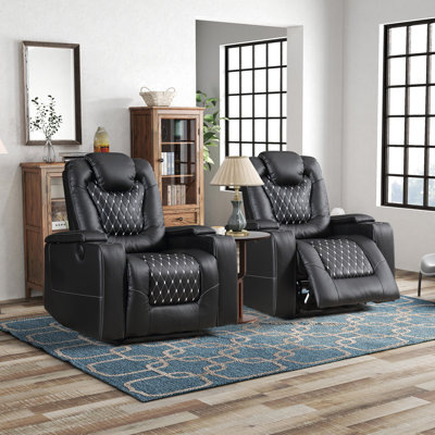 Red Barrel Studio 35.04″ Luxury Faux Leather Home Theater Individual Seat Recliner (Set of 2)